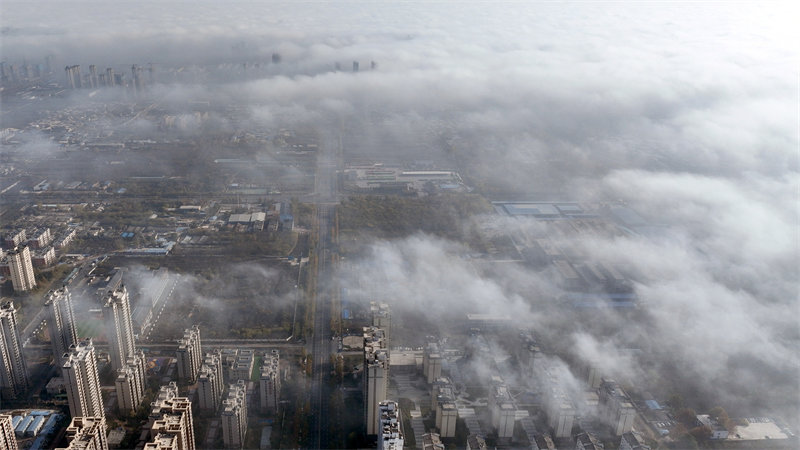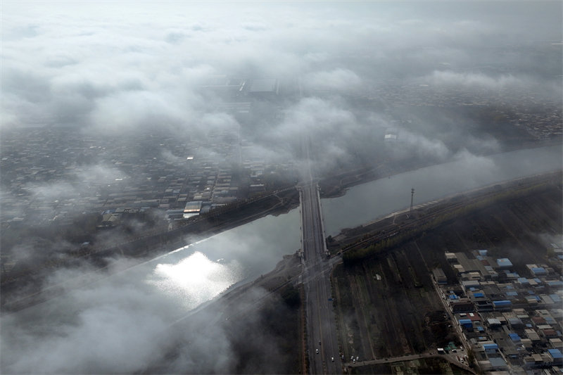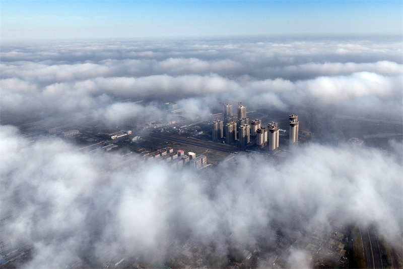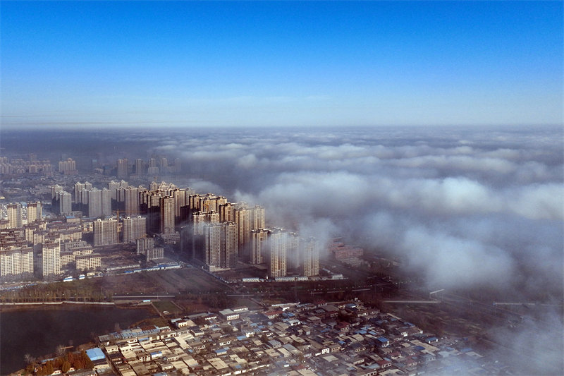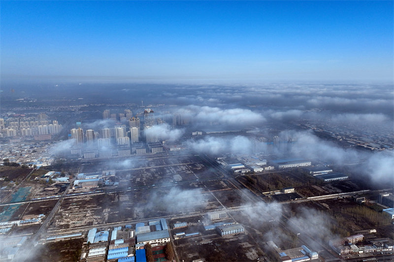 11月23日,河北省邢台市上空出现平流雾景观(无人机照片)。新华社记者 骆学峰 摄
