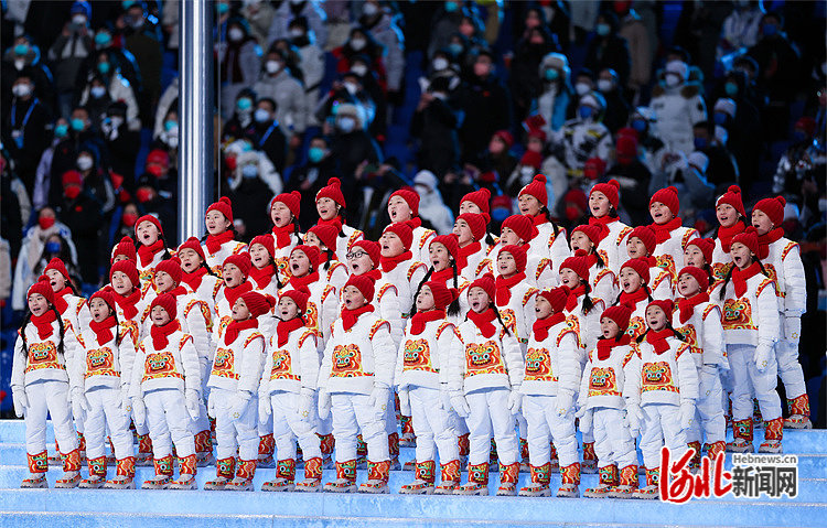 2022年2月20日晚,第二十四届冬季奥林匹克运动会闭幕式在国家体育场举行。来自阜平的孩子们再次唱响奥林匹克之歌。 河北日报记者 霍艳恩摄