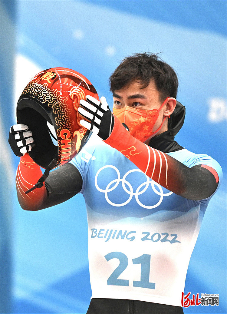 2022年2月11日晚,北京2022年冬奥会男子钢架雪车比赛中,代表中国队参赛的河北运动员殷正获得第五名。河北日报记者 霍艳恩摄