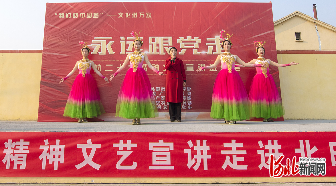 河北新闻网讯(河北日报记者周禹佳)“党啊,党啊,我亲爱的党啊,你是我们的领路人,我们永远跟你走,跟你走……”1月5日上午10点,在广阳区北旺镇相士屯村,精彩的歌伴舞《永远跟党走》拉开了河北省廊坊市“永远跟党走”党的二十大精神文艺宣讲进基层活动的帷幕。