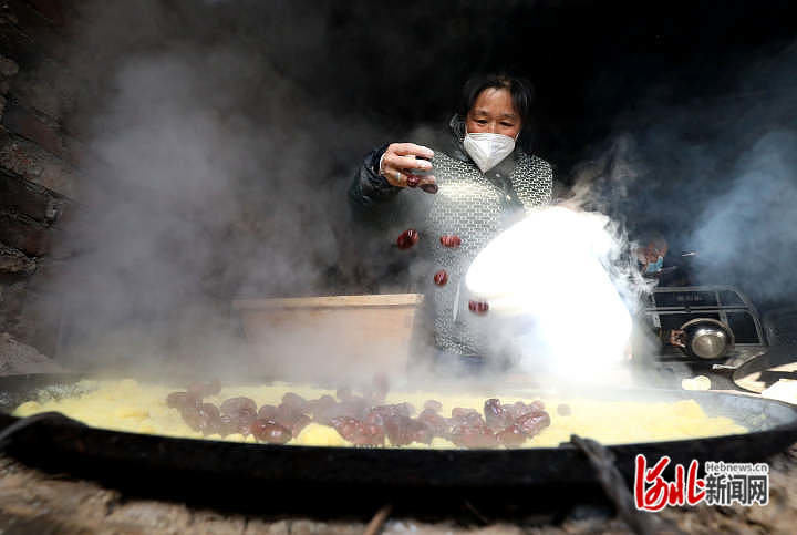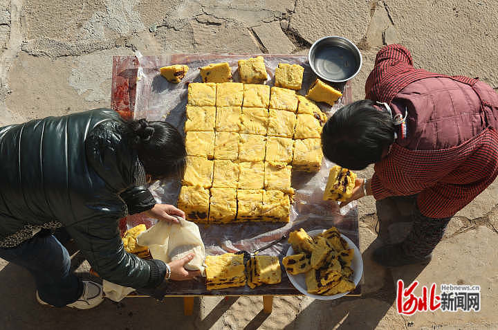 原标题:河北井陉:撒年糕 迎新春