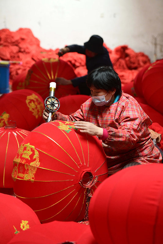 春节临近,河北省石家庄市藁城区屯头村的宫灯生产厂家加紧生产,供应节日市场。藁城宫灯历史悠久、产品丰富,2006年被列入河北省级非物质文化遗产名录。目前,藁城宫灯年产量近1亿对,销往海内外市场。新华社发(陈其保 摄)