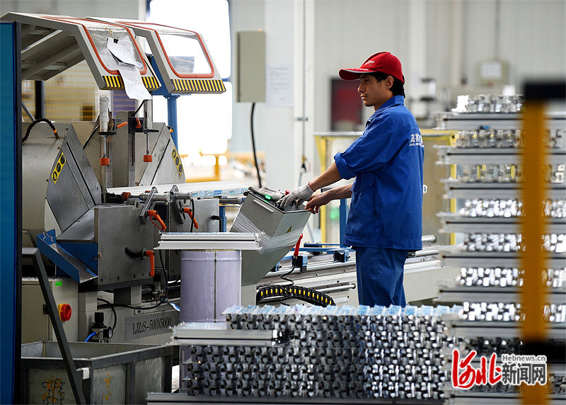 近年来,威县紧抓京津冀协同发展机遇,面向京津实施孵化器招商,先后引进北京嘉寓威县基地、北京德青源金鸡扶贫等一批科技含量高、成长性好、带动力强的绿色低碳产业项目,为全县经济转型升级注入了新动力。图为工人正在北京嘉寓威县基地生产车间利用数控切割锯加工隔热节能门窗产品。(河北日报资料片) 河北日报记者 赵永辉摄