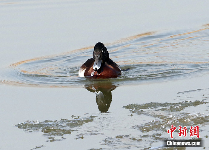 图为1月8日,衡水湖的“长期住户”、全球极危物种青头潜鸭。 中新社发 张余广 摄