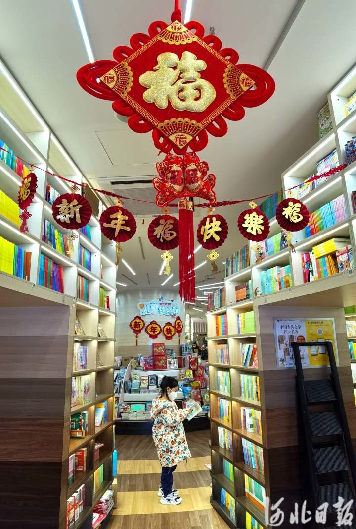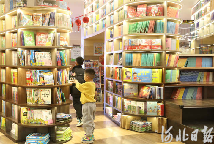 2023年1月22日,一位小朋友正在邯郸书城选购图书。