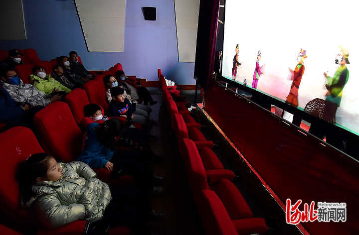 2月5日,邯郸市工人剧院举行冀南皮影戏公益展演,独特的皮影艺术吸引市民前来观看。