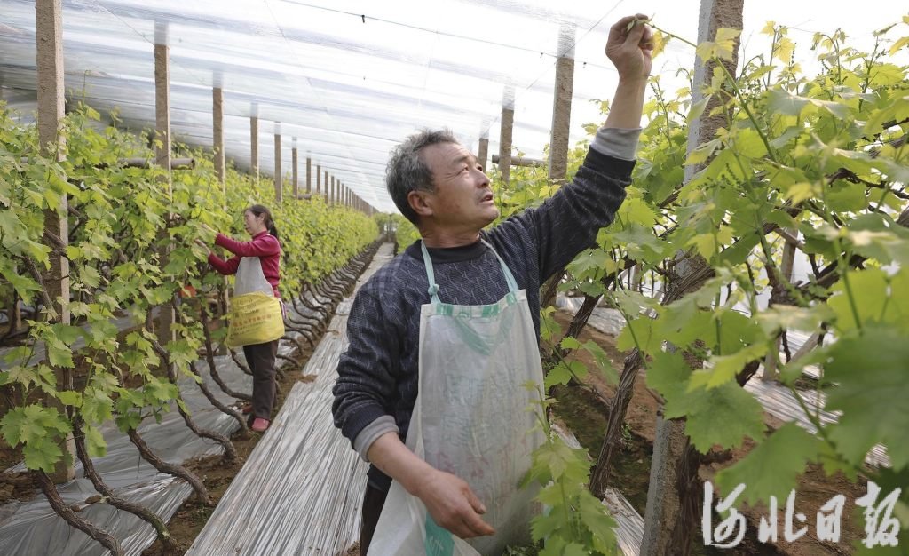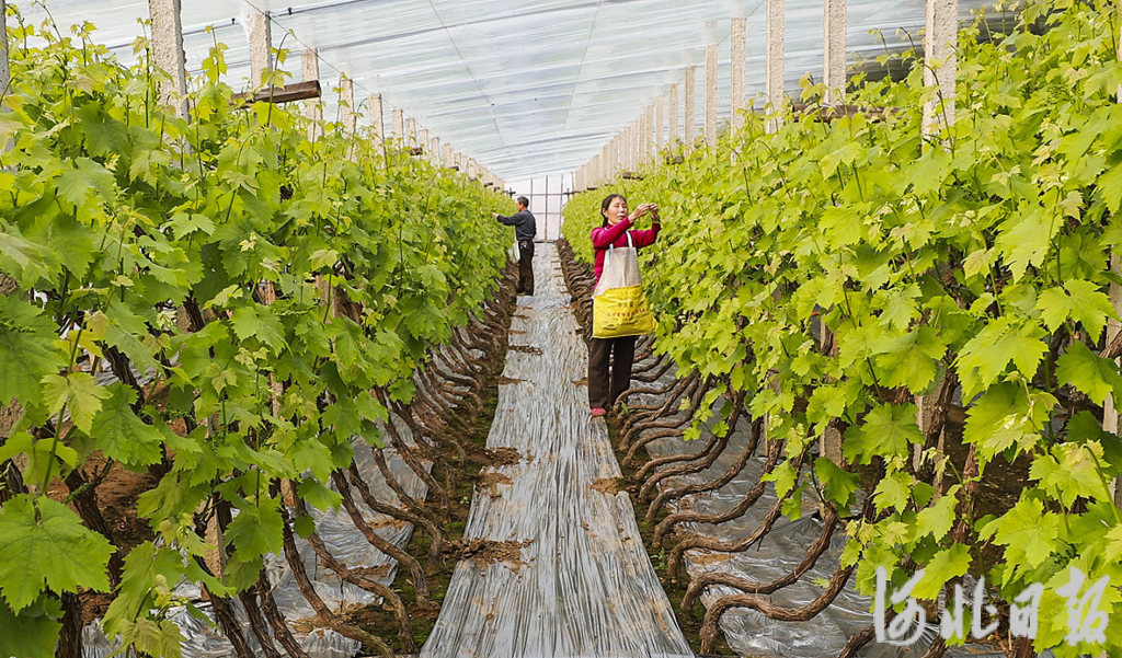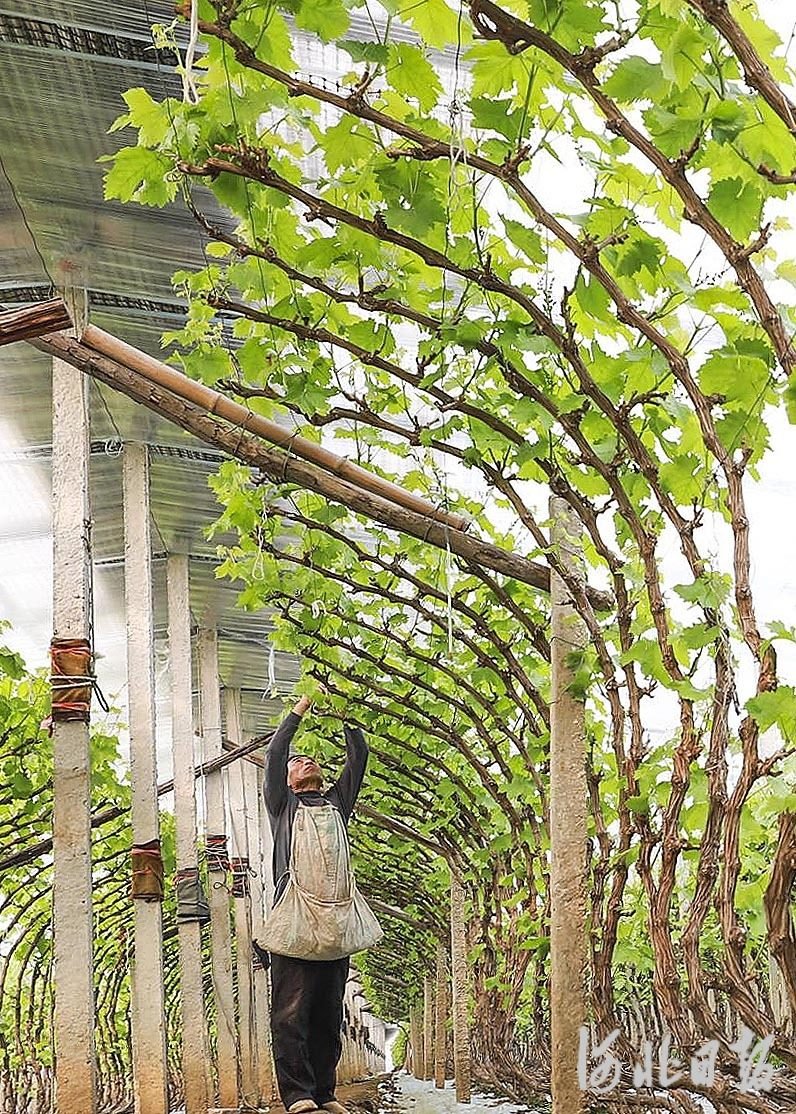 正值大棚葡萄春季管护期,葡萄种植户抓紧农时,开展剪枝、固定藤蔓等工作,为丰收打下基础。河北日报通讯员王帅摄