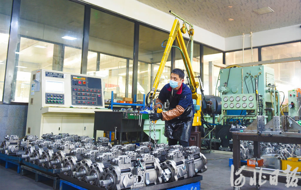 2月26日,邢台中伟卓特液压科技有限公司工人在测试挖掘机液压泵。