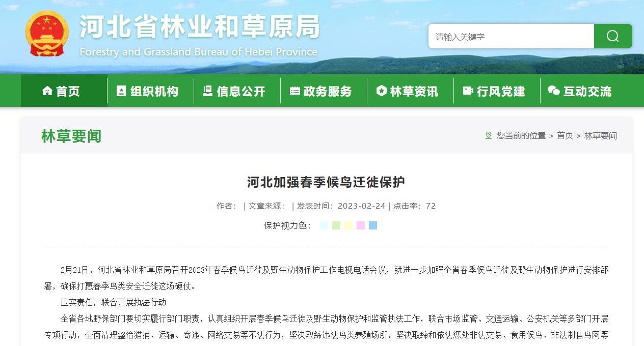 河北新闻网讯 坚决制止和惩治人工干预候鸟正常迁飞活动;严格管理以科学研究、保护宣传等名义为目的的各类拍摄活动……春回大地,草长莺飞,又到一年候鸟北归季。河北省林业和草原局日前作出专门部署,加强春季候鸟保护,确保春季候鸟迁徙安全。