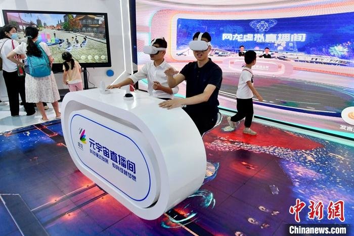 3月1日,中国工业和信息化部部长金壮龙在国务院新闻办新闻发布会上说,将加快布局人形机器人、元宇宙、量子科技等前沿领域,全面推进6G技术研发。资料图为福州一展会上,元宇宙直播间吸引参观者。 中新社记者 吕明 摄