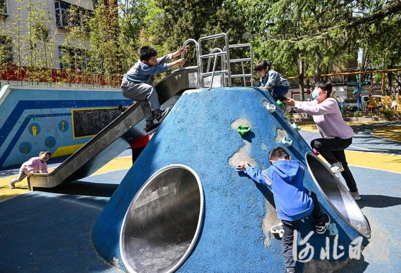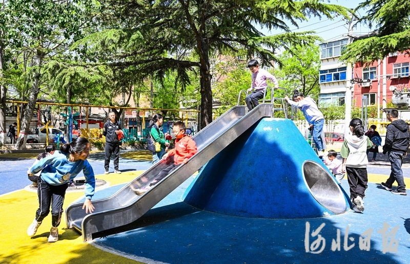 4月16日,孩子们在保定市竞秀区胜利南巷的“胜利·儿童友好街区”玩耍。