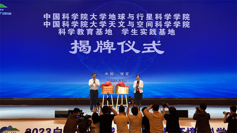 大会现场,中国科学院大学地球与行星科学学院及中国科学院大学天文与空间科学学院科学教育基地、学生实践基地进行了揭牌,保定市人民政府、中国科学院地质与地球物理研究所、中国科学院国家天文台、中国科学院大学签署了合作协议,并举行了保定市“政产学研”深度融合签约仪式和保定市科普示范基地授牌仪式。会议期间,5位中国科学院院士,立足多年研究与实践作了主旨报告,多位专家学者围绕“气候——生态突变”作了专题报告,与会人员进行深入对接交流,并先后赴白石山国家地质公园、白洋淀等地进行实地考察。