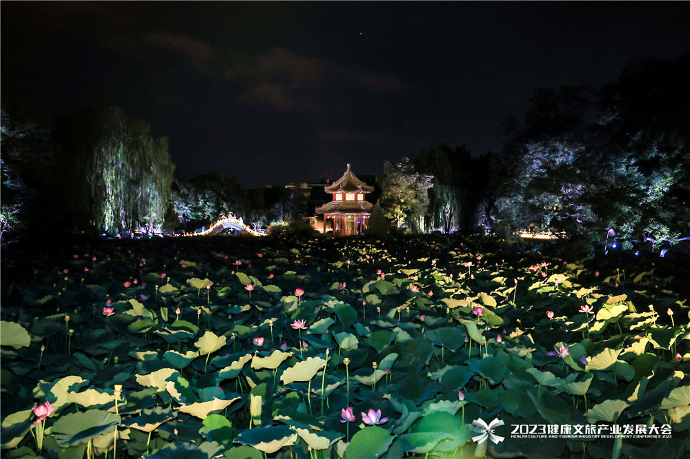 6月19日至21日,以“融合创新—健康文旅产业高质量发展之路”为主题的2023健康文旅产业发展大会在保定市举办。19日晚,保定古莲花池、直隶总督署、西大街也再次展开了夜游新场景。图为古莲花池。本组图片来自大会主办方。