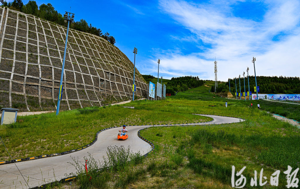 7月1日,游客们在张家口市崇礼区翠云山银河滑雪场体验山地滑车。崇礼瞄准后奥运经济的广阔市场,推出了露营、草地滑车、山地骑行等特色旅游项目,消夏度假旅游持续升温。河北日报、河北日报客户端记者耿辉摄
