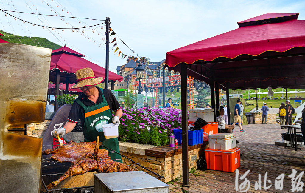 7月1日,张家口市崇礼区太舞滑雪场工作人员为游客准备当地特色美食。崇礼瞄准后奥运经济的广阔市场,推出了露营、草地滑车、山地骑行等特色旅游项目,消夏度假旅游持续升温。河北日报、河北日报客户端记者耿辉摄