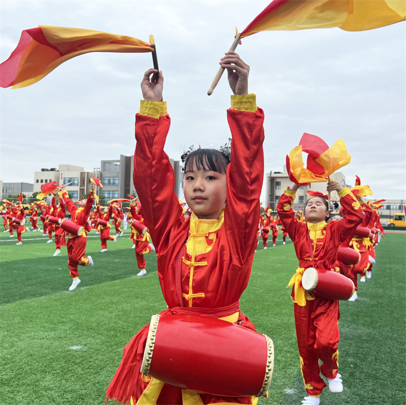 5月5日,霸州市红光小学腰鼓社团的学生在表演腰鼓。该小学创新课后服务活动内容,将腰鼓、武术、陶艺等非遗项目融入学生社团活动,让学生感受传统文化的魅力。 河北日报记者 赵永辉摄