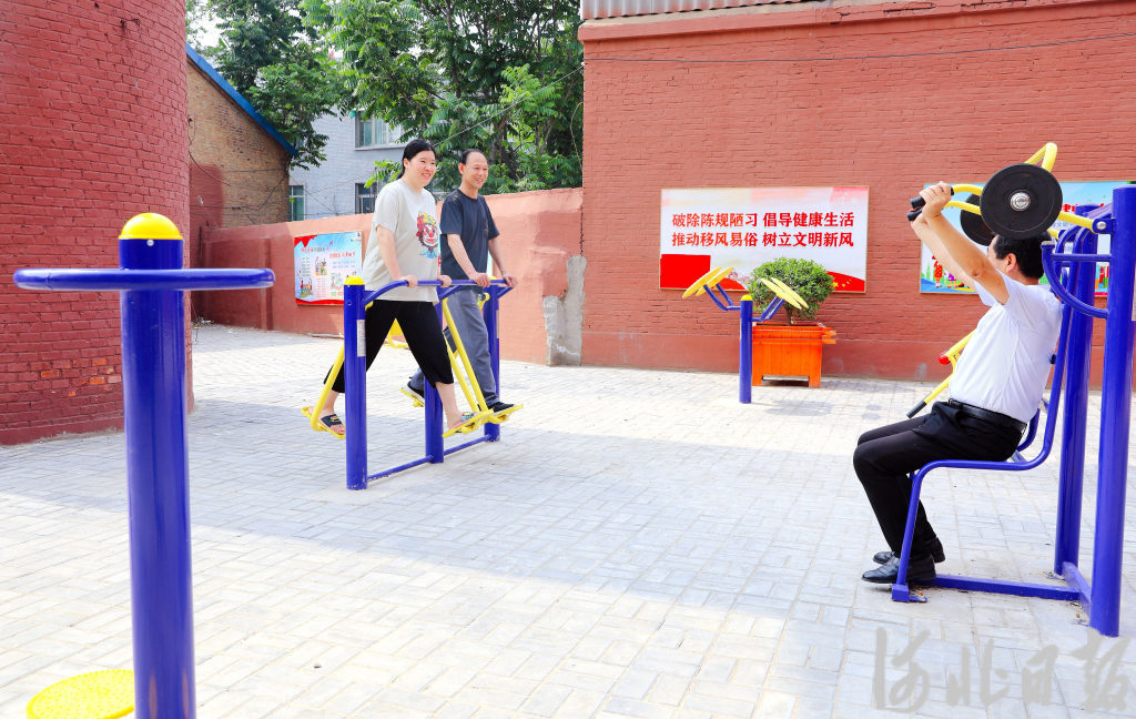 近日,居民在宁晋县民政局家属楼小广场锻炼身体。