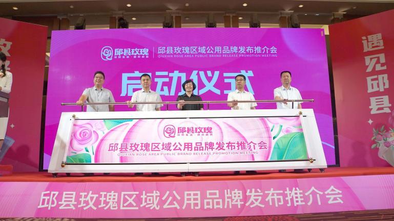 随后,几位领导共同上台,完成了发布会启动仪式,“邱县玫瑰”区域公用品牌推介会正式拉开帷幕。