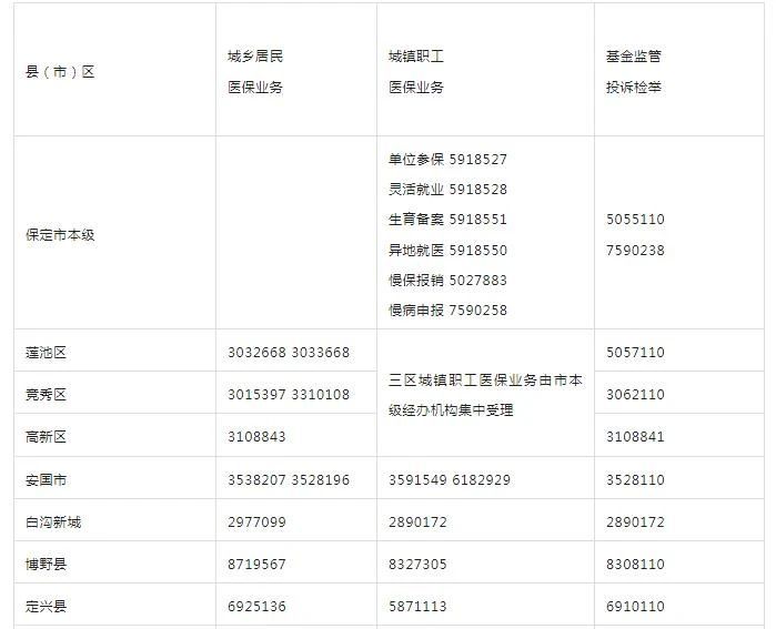 注:以上均为工作日对外电话。市医保局24小时值班电话:7590234
