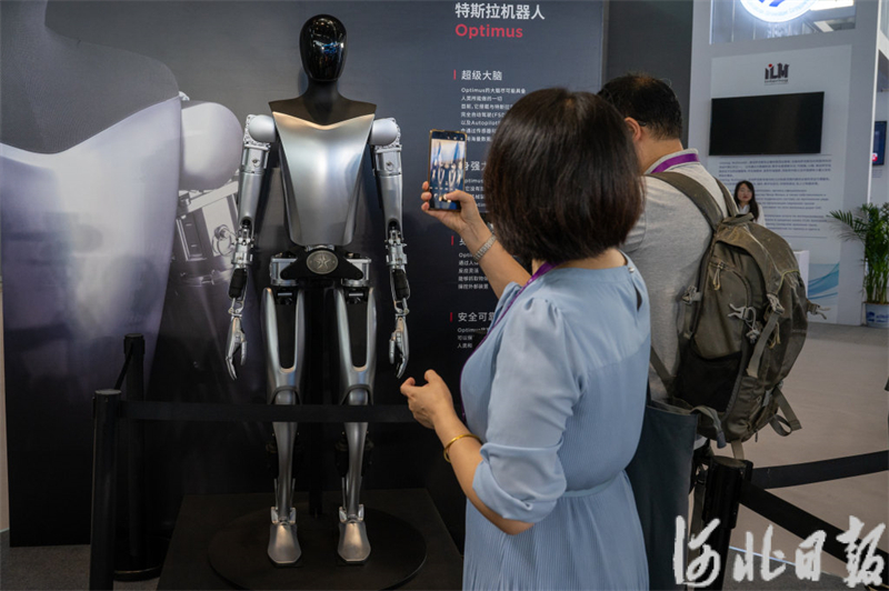 9月6日,石家庄(正定)国际会展中心,观众在参观特斯拉人形机器人。