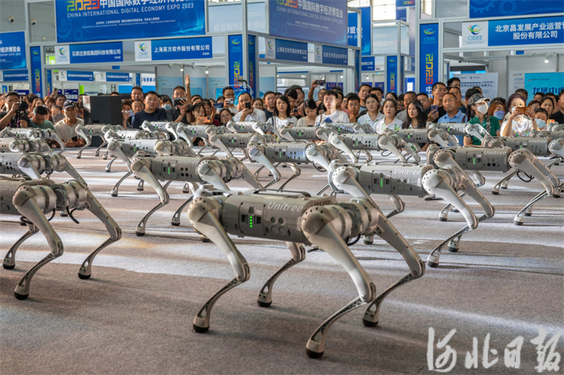 9月6日,2023中国国际数字经济博览会在石家庄(正定)国际会展中心开幕。在展览现场,各具特色的机器人受到广泛关注。 河北日报、河北日报客户端记者赵杰摄