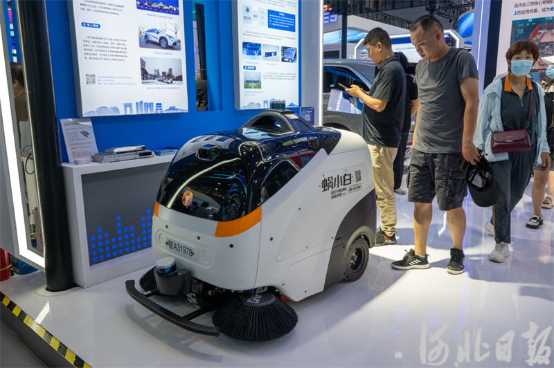 9月6日,石家庄(正定)国际会展中心,观众在参观智能清扫机器人。