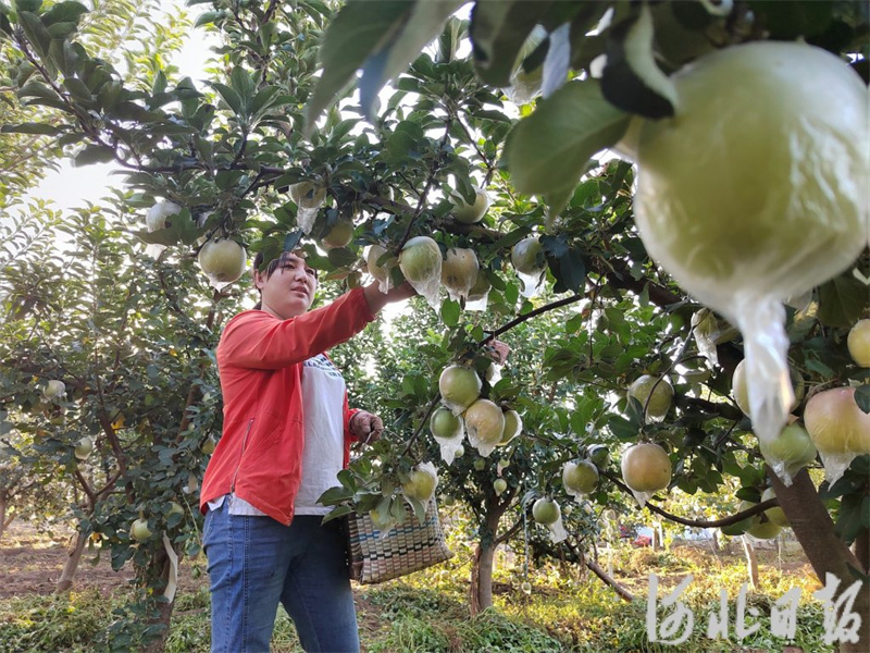 9月21日,新乐市贯上村果农在采摘苹果。