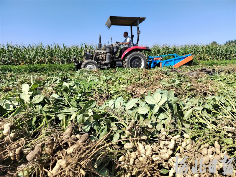 9月21日,新乐市官庄村农民在收花生。