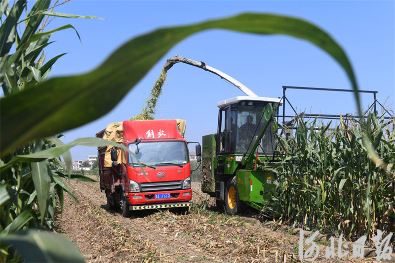 9月21日,新乐市东名村农民正在青储玉米。