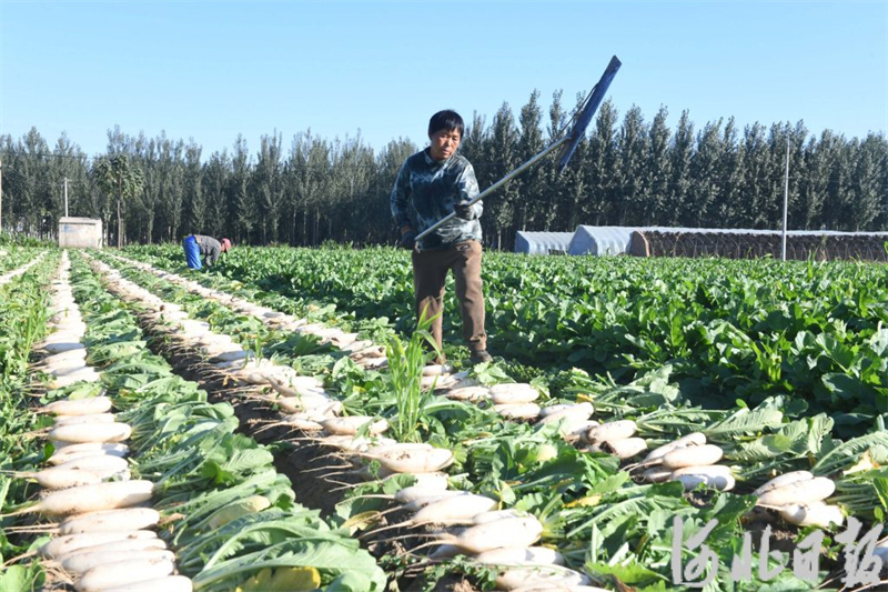 10月9日,新乐市坚固村农民正在收获白萝卜。