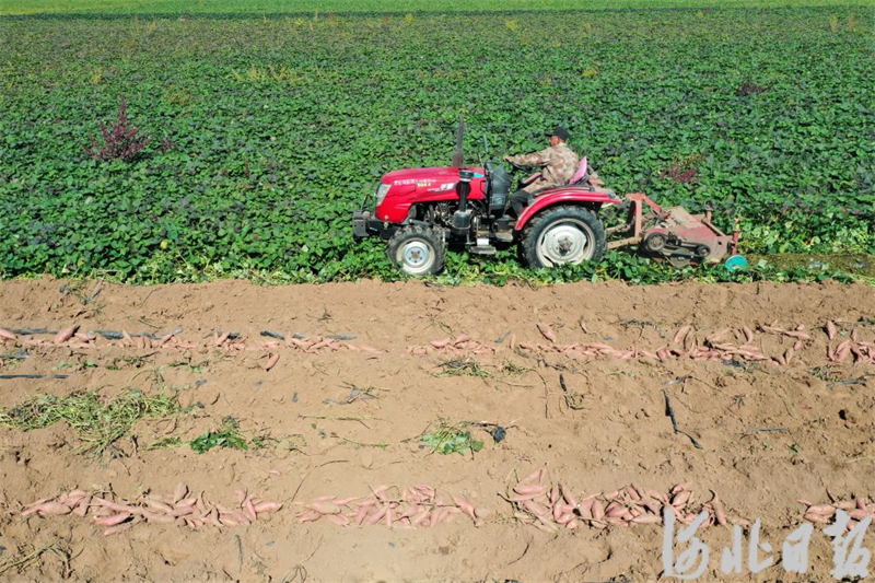 10月9日,在遵化市平安城镇京五营村,农民正在收获红薯。