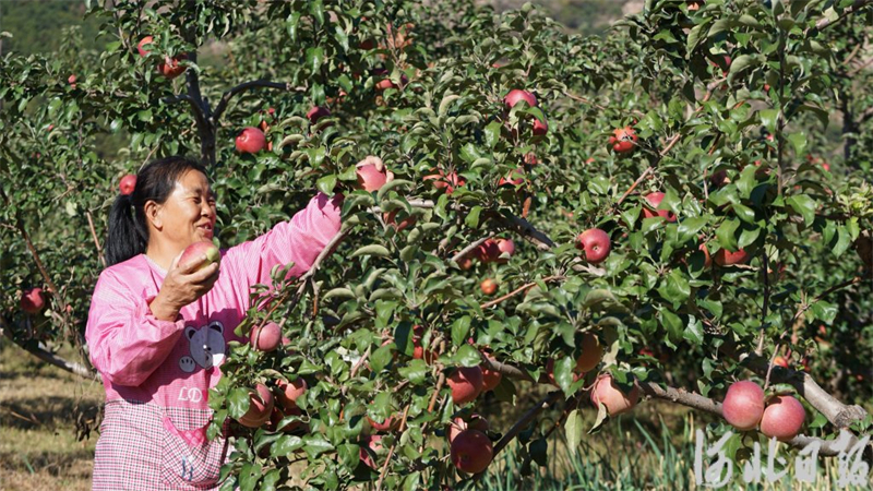 10月9日,在滦平县烧锅营村久诚农牧专业合作社苹果种植基地,果农在采收苹果。