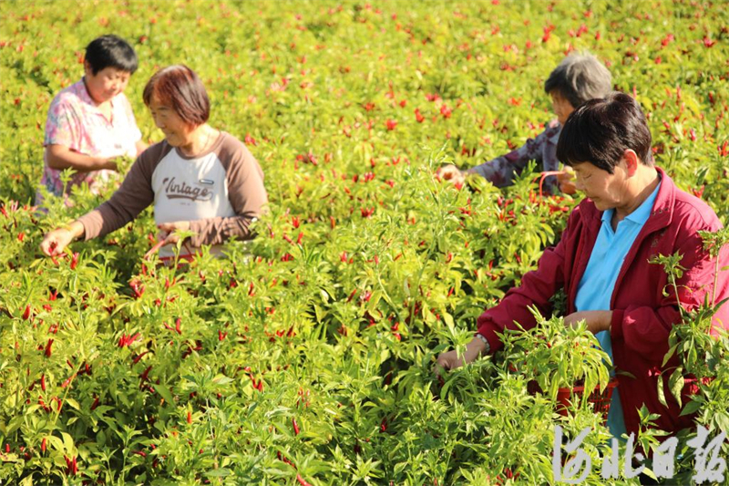10月9日,在广平县南阳堡镇南刘村辣椒种植基地,农民在采摘辣椒。
