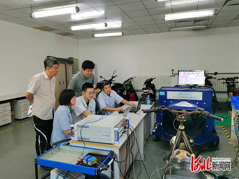 9月22日,廊坊科森电器有限公司科技特派团成员在公司试验室内,与该公司工作人员一起查看项目进展情况。河北日报记者周禹佳摄