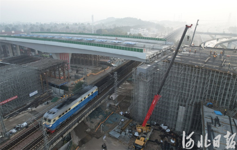 10月17日,石家庄市中华北大街上跨西环线铁路T型刚构桥转体前。 通讯员张浩楠摄