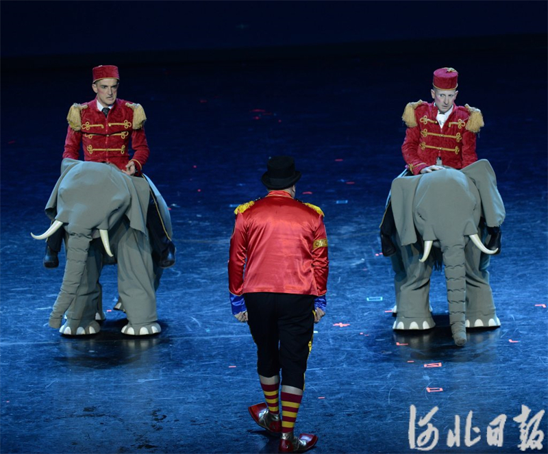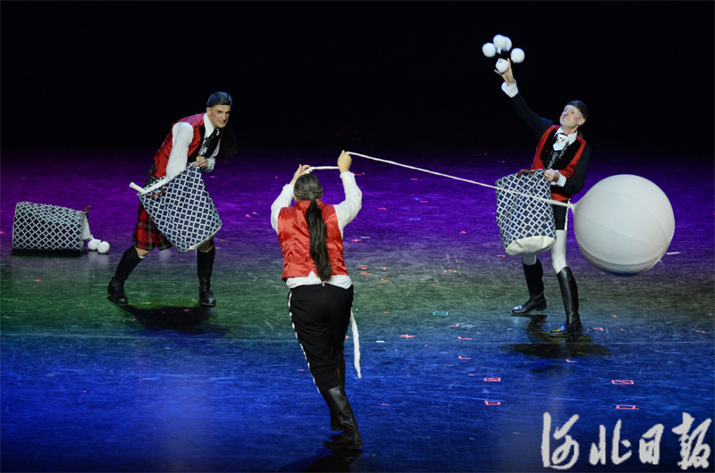 10月23日,第十九届中国吴桥国际杂技艺术节B场演出,法国演员表演《三人滑稽》。