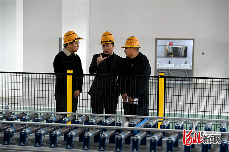 11月21日,丰北环保科技承德有限公司车间内,公司总经理盛春辉(中)与入企政府服务代表交流。河北日报记者陈宝云摄