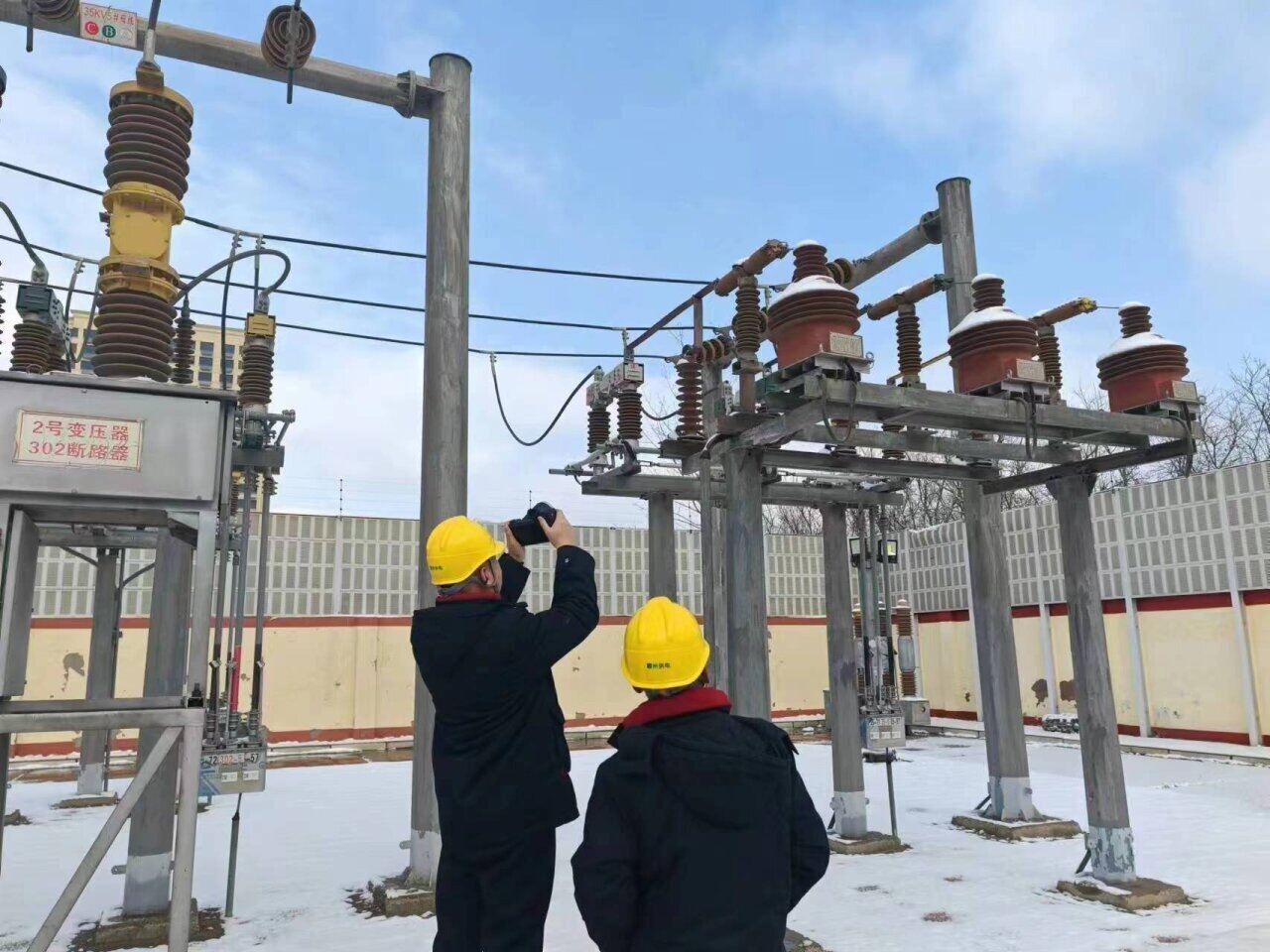 12月11日,国网霸州市供电公司工作人员正在进行雪后巡查。 河北日报通讯员赵亚彬摄