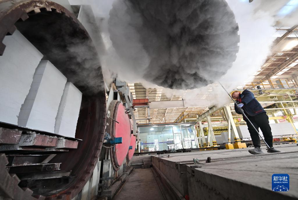 12月17日,工人在河北省滦州市一家新型环保建筑材料企业的生产车间工作。