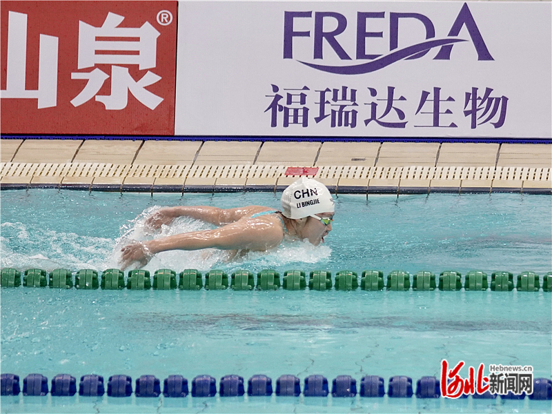 12月13日,李冰洁在2023年全国游泳锦标赛女子200米蝶泳预赛中。河北泰华锦业游泳俱乐部供图