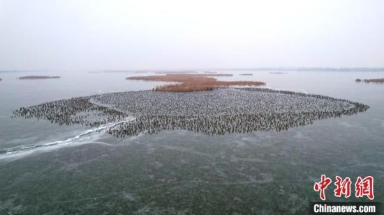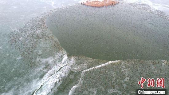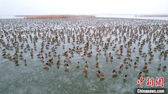 原标题:“京津冀最美湿地”河北衡水湖:冰水间万只野鸭聚集