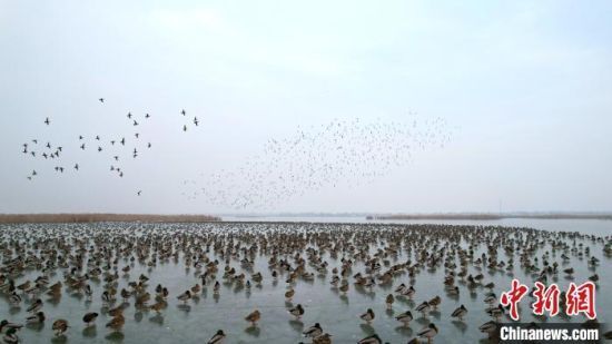 1月1日,成群野鸭腾空而起。王铁良 摄
