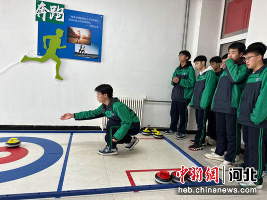 学生正在进行陆地冰壶比赛的决赛。 刘艳飞 摄