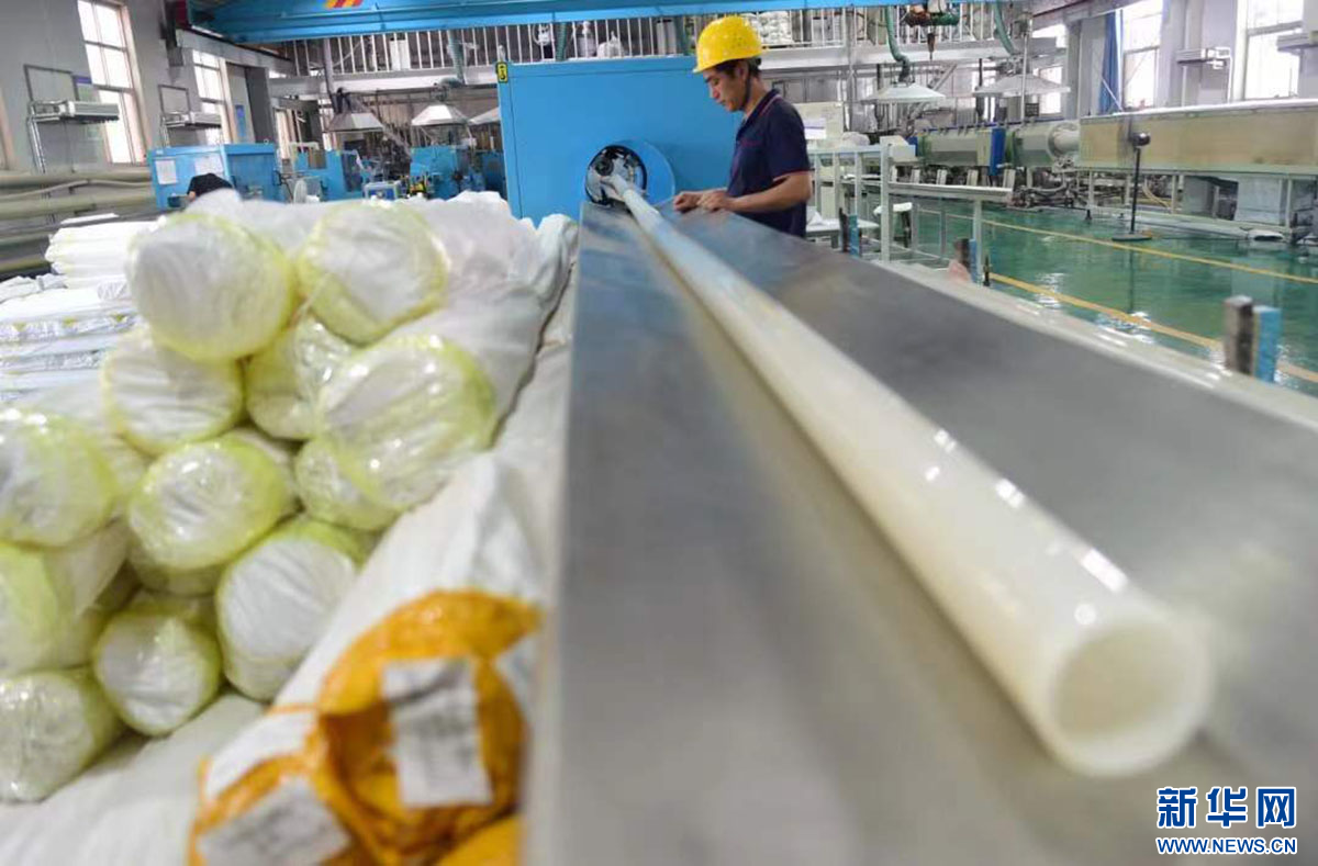 塑料管材亮出“科技范”。刘蒙蒙 摄
