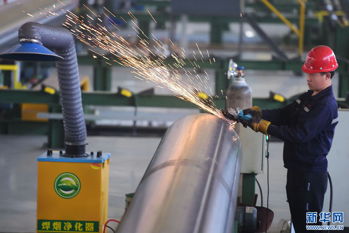 工人正在管道生产线上进行抛光作业。傅新春 摄