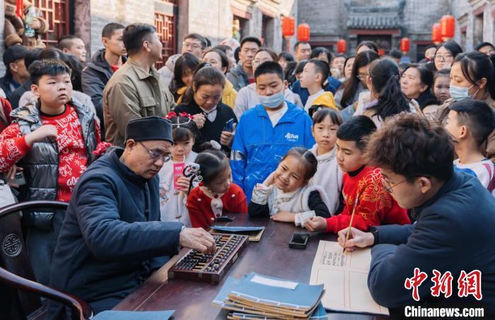 2月14日,武安市伯延古镇《商帮归来》演出现场,演员再现武安商帮传家训的场景。安晓亮 摄