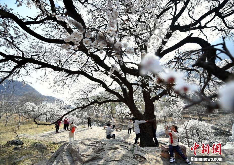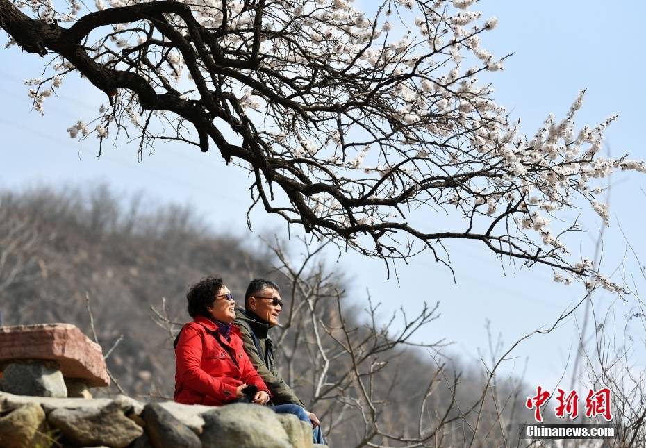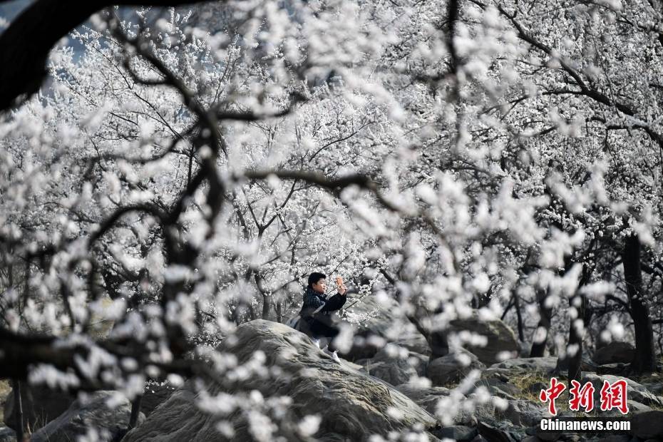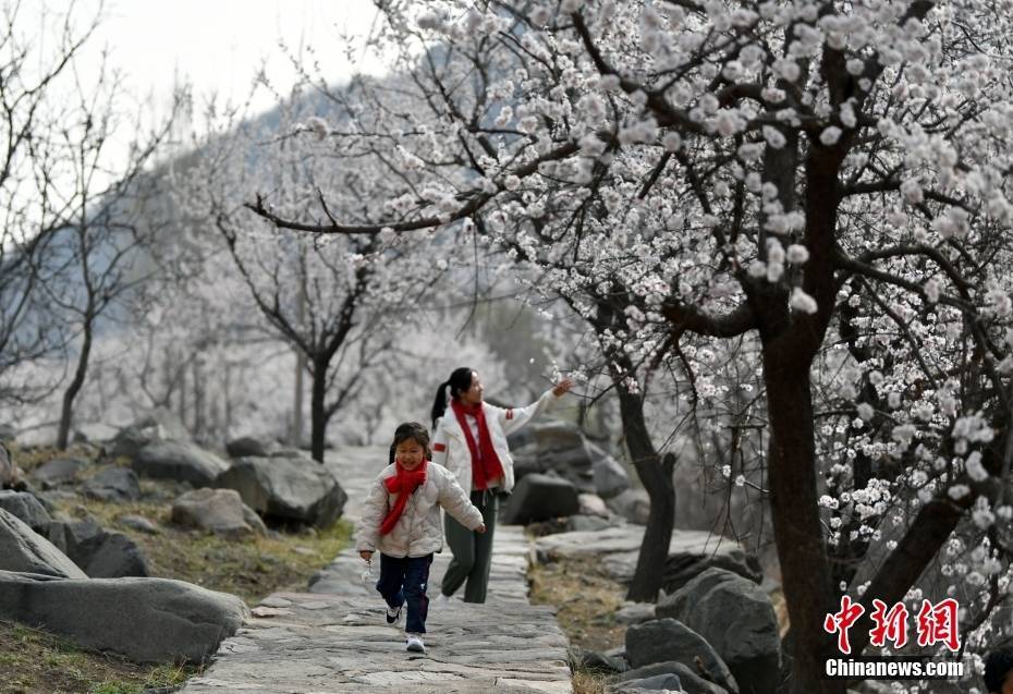 原标题:河北石家庄:杏花香满谷 游客踏青来