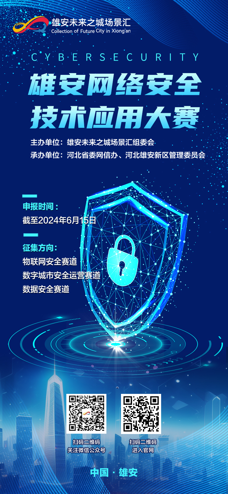 大赛立足雄安智能城市建设与应用需求,围绕打造新区网络安全创新链、生态链、产业链,聚焦利用人工智能、量子加密、区块链等新技术,提升网络终端安全、数据安全、网络应用和服务安全能力,启动三大赛道的征集。