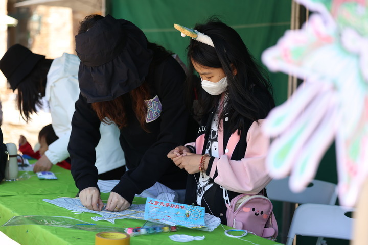 5月1日,游客在太舞滑雪小镇制作手工风筝。 受访者供图