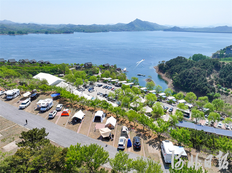 2024年5月2日,游客在唐山市迁西县栗香湖房车营地休闲度假。